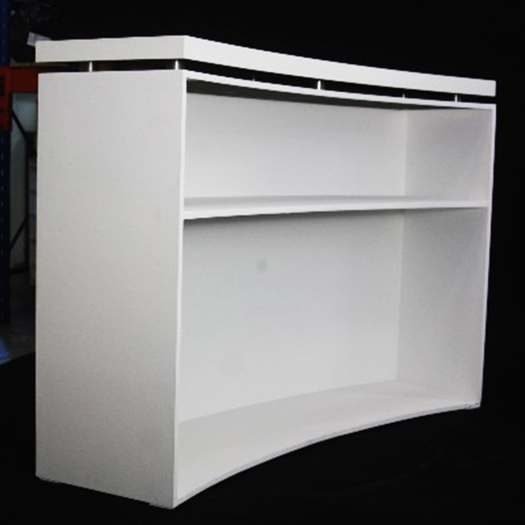 Balcão “semi-circular” branco em madeira com prateleira