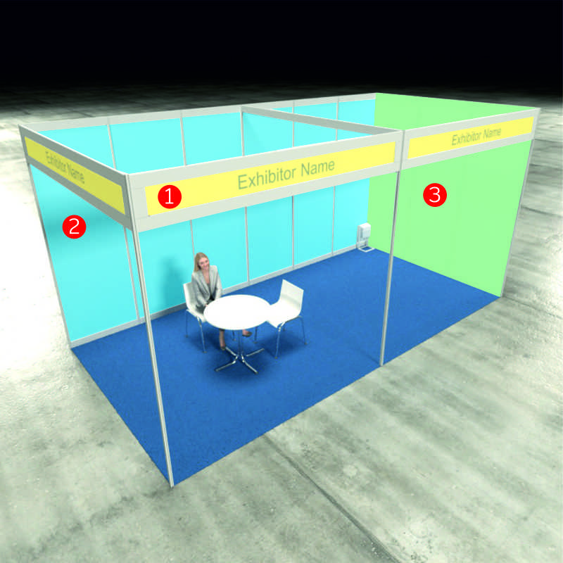 Varia consoante a implantação do stand no evento e do número de frentes.